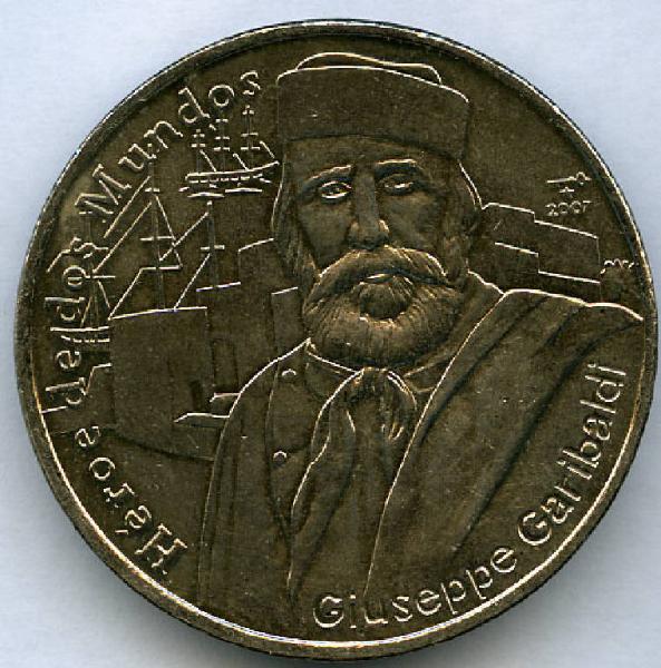 1 peso commemorativo di Giuseppe Garibaldi eroe dei due mondi. Giuseppe Garibaldi; stemma