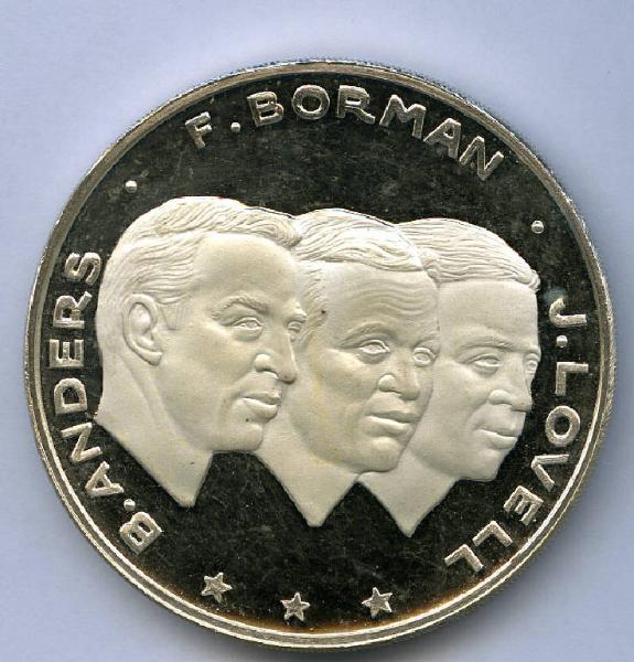 Medaglione ricordo missione Apollo 8. B. Anders, F. Borman, J. Lovell; Apollo 8