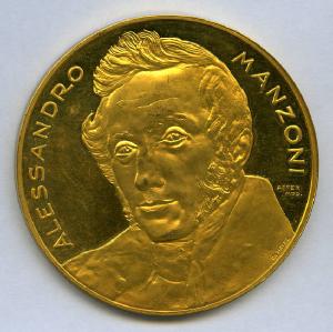 Medaglia dedicata al primo centenario della morte di Alessandro Manzoni. Alessandro Manzoni; stemma