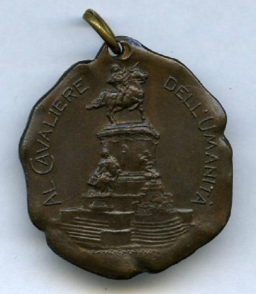 Medaglia commemorativa del monumento a Garibaldi di Buenos Aires. Monumento equestre; figura femminile