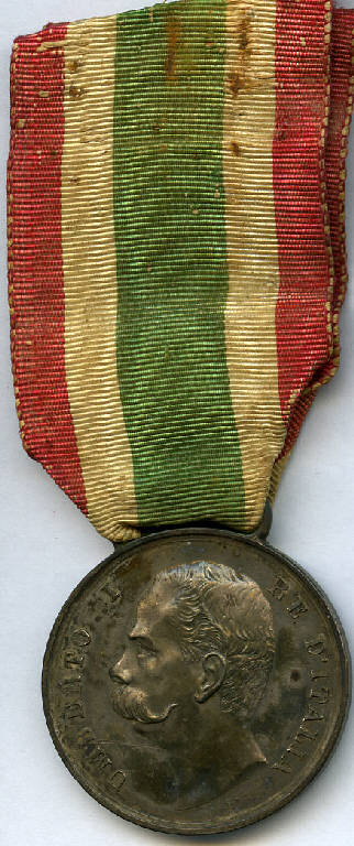 Medaglia a ricordo dell'Unità d'Italia (Medagliere di Angelo Fratta). Umberto I; corona vegetale