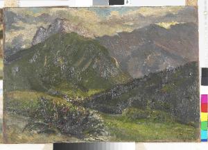 - NOTIZIE STORICO CRITICHE Il paesaggio montano offre lo spunto per indagare la gamma cromatica dei verdi illuminati da sapienti colpi di spatola che definiscono i fiori in primo piano.