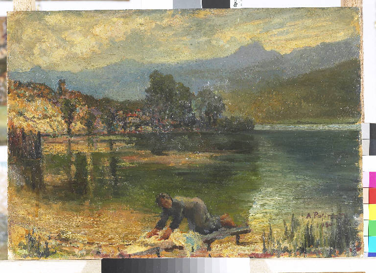 - NOTIZIE STORICO CRITICHE Le acque scure del Lago di Ledro costituiscono lo scenario su cui si affaccia il borgo appena abbozzato e si inserisce in primo piano l'attività quotidiana della lavandaia.