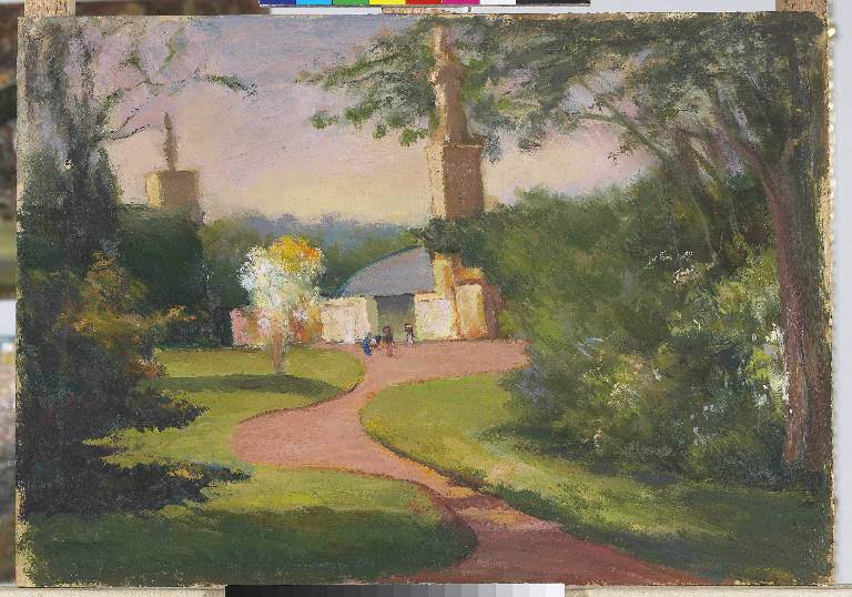 - NOTIZIE STORICO CRITICHE Il tema del giardino, indagato nei toni del verde e negli effetti luministici, ricorre di frequente nella produzione artistica di Antonio Pasinetti a partire dagli anni Venti del Novecento.