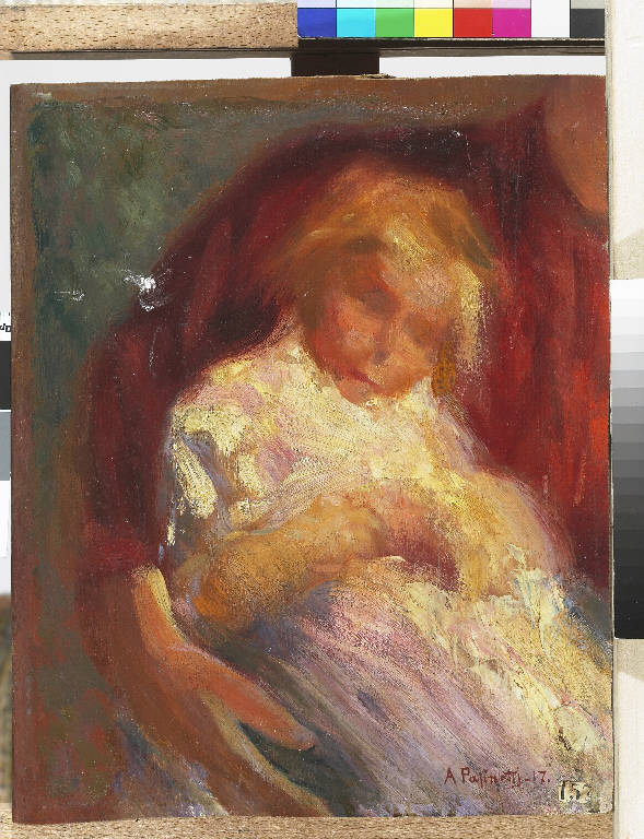 - NOTIZIE STORICO CRITICHE Nella tavola l'artista privilegia la rappresentazione dell'atmosfera domestica e della dimensione degli affetti rispetto alla cura dei dettagli fisiognomici.