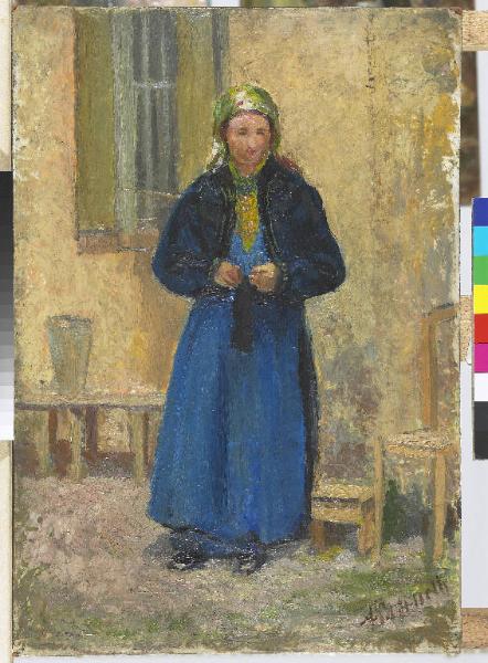 - NOTIZIE STORICO CRITICHE L'impegno di Antonio Pasinetti in una pittura attenta al dato sociale, ha spesso come protagonista la figura e il lavoro della donna ripresa nella quotidianità rurale e, in questo caso, descritta nel suo caratteristico abito popolare.
