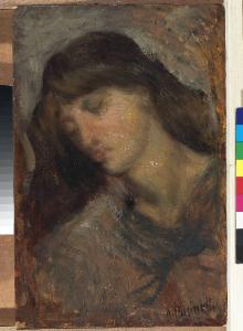 - NOTIZIE STORICO CRITICHE Il bozzetto rappresenta lo studio di una figura femminile i cui tratti fisiognomici sono appena accennati in favore della posa e della resa luministica.