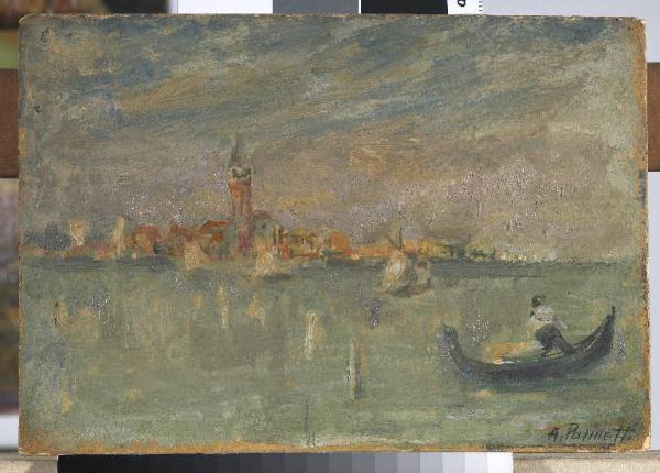 - NOTIZIE STORICO CRITICHE La pittura acquerellata dalle linee morbide esalta l'ambiente della laguna in cui acqua, cielo e profilo urbano sembrano mescolarsi in un unico elemento.
