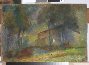- NOTIZIE STORICO CRITICHE Il dipinto si traduce in una sorta di tavolozza su cui sperimentare le declinazioni dei verdi e dei viola, facendo affiorare la sagoma di pochi elementi figurativi.