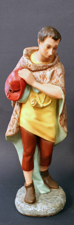 - NOTIZIE STORICO CRITICHE Enigmatica figura a metà tra un pastore e un pellegrino, può essere definito genericamente viandante. Questa scheda descrive una delle due versioni custodite presso il Museo del Presepio e seppur in differente in stato di conservazione, sono pressoché identiche.\nOpera proveniente da Bergamo (ex botteghe Guelfo e Panzeri) e donata al Museo da Felicita Panzeri, ultima superstite della ditta omonima.