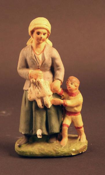 Statuetta rappresentante una donna con in mano dei volatili e un bambino
