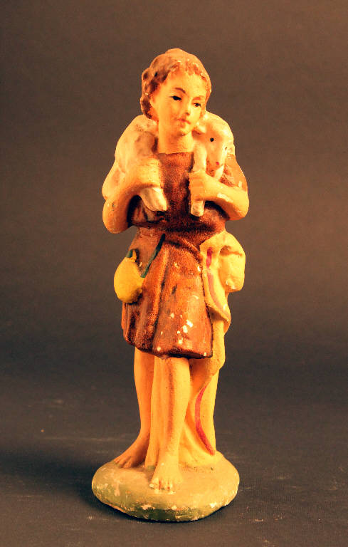 Statuetta rappresentante un giovane pastorello con un agnello sulle spalle.