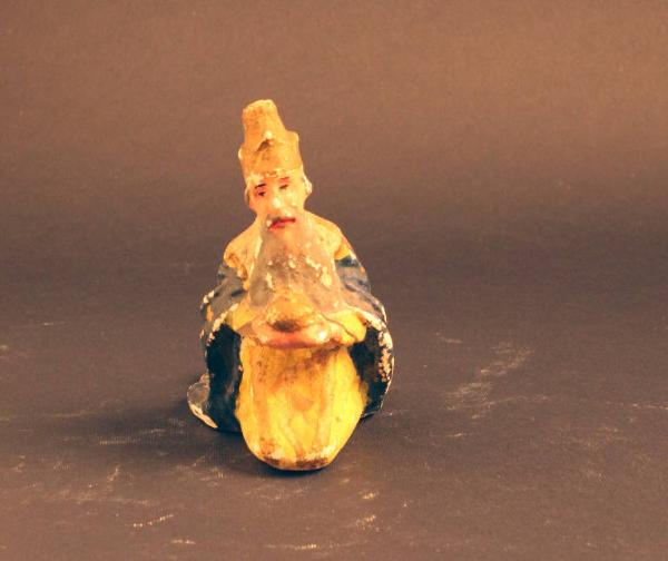 Statuetta rappresentante un Re Magio, probabilmente Melchiorre, inginocchiato e recante un dono tra le mani.