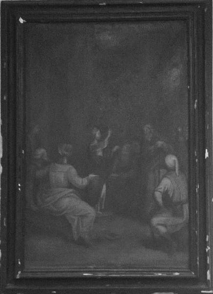 - NOTIZIE STORICO CRITICHE Stilisticamente, l'opera in esame si avvicina ai "Misteri del Rosario" della chiesa di S. Maria della Pieve a Soncino e a quelli della chiesa di S. Martino a Nembro, preferibilmente assegnati, per la corsività impacciata e scorretta della stesura, alla bottega del Salmeggia. In particolare, qui si nota la medesima composizione della "Disputa di Gesù con i dottori nel tempio" di Soncino. Questa metodicità attesterebbe la probabile esistenza, nella bottega dell'artista, di modelli fissi per le principali storie sacre, eseguite dal Salmeggia stesso in tempi diversi, e utilizzati dalla sua bottega fedelmente o con varianti in diverse occasioni.