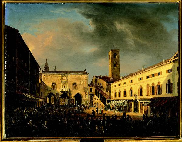 - NOTIZIE STORICO CRITICHE L'opera, di provenienza ignota, fu esposta a Brera nel 1833. Dopo essere passata per Palazzo Frizzoni e la Banca Popolare di Bergamo (Ubi Banca) è oggi esposta alla Pinacoteca dell'Accademia Carrara. Il modello di Piazza Vecchia era stato suggerito a Costantino Rosa dal Ronzoni che nel 1817 ne aveva dato un notevole esempio.