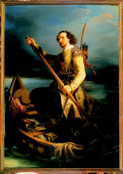 - NOTIZIE STORICO CRITICHE Il dipinto, compiuto nel 1861, rimane tra le prove più alte dell'artista. Appena ultimato, fu all'Esposizione nazionale di Firenze, insieme ad altri dipinti dell'autore. Una annotazione della figlia Selene, ricorda che nel 1860 il distinto letterato Gabriele Rosa suggerì allo Scuri l'idea di un ritratto storico dell'illustre concittadino e che il dipinto fu in seguito donato dall'autore al Comune di Bergamo. Qui, però, restò esposto per breve tempo, venendo dapprima trasferito in Biblioteca Civica Angelo Mai ad accompagnare il lascito dei cimeli beltrameschi, poi nella raccolta moderna dell'Accademia Carrara, quindi al Museo di Scienze Naturali "Caffi" di Bergamo dove ancora si trova.