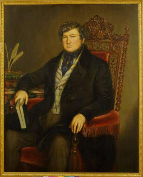 - NOTIZIE STORICO CRITICHE Inserita in una splendida cornice dorata originale, la grande tela raffigura il conte Bartolomeo Secco Suardo (Lurano, 1796 - 1862), figlio di Gerolamo e fratello di Giovanni. Poeta d'occasione e letterato, collaborò a lungo per la Biblioteca Civica Angeli Mai con il bibliotecario Agostino Salvioni. La sua opera più nota è "Il mio secolo" (1841).\nPrecedentemente attribuito alla scuola di Giuseppe Diotti, il dipinto è stato recentemente restituito a Giovanni Moriggia, uno dei principali pittori provenienti dalla scuola del Diotti (L. Brignoli, 2015-2016), grazie al testamento olografo di Bartolomeo conservato nell'Archivio Secco Suardo di Lurano.\nIl dipinto passò in epoca imprecisata al Comune di Bergamo e fu collocato nell'Ufficio del Giudice Conciliatore. Arrivato nel 1998 all'Accademia Carrara come deposito del Comune, dal 1999 è esposto presso la Biblioteca Civica Angelo Mai.\nPer quanto riguarda la sua collocazione cronologica, la presenza del volume "Il mio secolo" costituisce un sicuro termine post quem per la data di esecuzione che oscilla tra il 1841 (anno di realizzazione del volume) e il 1848, anno in cui Moriggia fu costretto a riparare in Svizzera dopo aver partecipato alle Cinque Giornate di Milano.