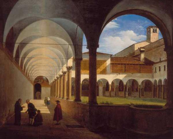 veduta prospettica del chiostro di San Francesco a Bergamo