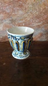 - NOTIZIE STORICO CRITICHE La lavorazione della ceramica ligure ha origini antiche: nasce per la presenza nel territorio ligure di bacini argillosi, materia prima grazie alla quale si sviluppa l¿arte figulina a partire dalla seconda metà del XII secolo a Savona per poi raggiungere nel ` 400¿ Albisola (ceramica di Albisola) ed anche Genova.\nIn cinque secoli di storia la ceramica ligure mantiene e rafforza la sua immagine raffinata e di pregio anche grazie alla sua collocazione geografica ed i collegamenti con le regioni limitrofe ( via mare con la Francia e via terra con il Piemonte).\nTra il `500 e il `600 la ceramica ligure vive un momento di splendore grazie alla diffusione dell¿arte della maiolica, con un¿ornamentazione inizialmente blu cobalto e poi in policromia con vari motivi sia orientali ( piante lacustri, insetti, uccelli,pagode,animali da cortile) che occidentali ( castelli turriti, soggetti religiosi,mitologici).\nI decori più famosi diffusisi allora e prodotti ancora oggi, sono ad esempio:\nIl decoro Antico Savona o Bianco Blu : fu introdotto dalla famiglia Guidobono al cui capostipite Giovanni Antonio (1631-1685) si fa risalire la definizione a chiaro scuro del monocromo turchino. E' costituito fondamentalmente dalla rappresentazione della figura umana collocata in un paesaggio quasi sempre costituito da un primo piano con cespi vegetali e con piccole rocce e da un secondo piano con prati, alberi, qualche casa o castello e da un piano di fondo con montagne e nuvole. La "scena" è la rappresentazione di qualche episodio biblico, mitologico, letterario raffigurato in stampe, in illustrazioni di libri o è costituita dalla raffigurazione di qualche putto o paesaggio.