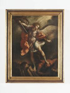 - NOTIZIE STORICO CRITICHE L'opera in questione si rifà al dipinto L'arcangelo Michele schiaccia Satana di Guido Reni, datato 1635, custodito nella Chiesa di Santa Maria Immacolata in via Veneto a Roma.