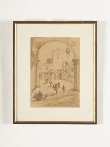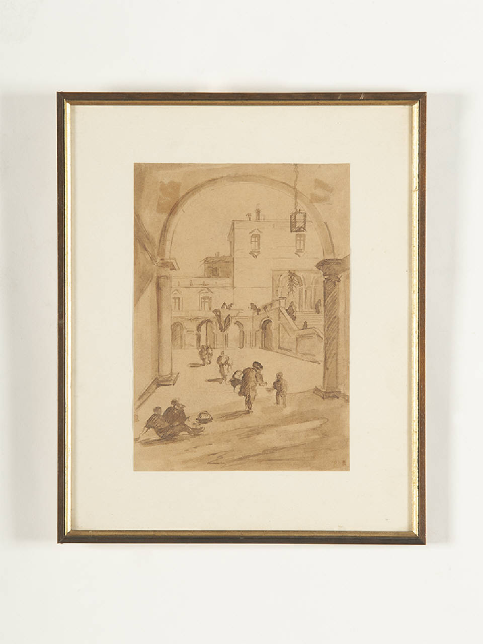 Disegno entro semplice cornice di recente fattura in legno modanato con profilatura interna dorata.