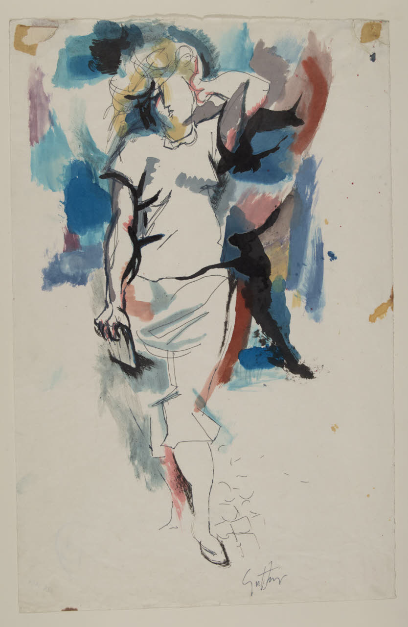 - NOTIZIE STORICO CRITICHE L'opera di Guttuso, della fine degli anni Cinquanta, è caratterizzata da una materia pittorica che si fa più sciolta ed espressiva. La sua immaginazione figurativa sembra ricalcare, inoltre, la condizione anonima e alienante del cittadino, nell'urbano e nella vita sociale della gente che vive la città. Osservando le opere di questo periodo è facile notare, infatti, i numerosi personaggi che camminano per le strade; è l'uomo di massa quello rappresentato, l'individuo nella sua completa solitudine esistenziale. Enrico Crispolti mettendo a confronto questo genere di opere, osserva infatti che i personaggi di Guttuso "non sono decisi dallo schema di una situazione: esistono piuttosto per la forza intima della loro personale, improvvisa carica di valore umano" (E. Crispolti, Catalogo ragionato generale dei dipinti di Renato Guttuso, Milano 1984, v. 2 p. LXVIII). Il disegno Figura sulla strada, conservato all'interno del Gabinetto di Disegni del Castello Sforzesco, appartiene a questo tipo di figurazione. Esso descrive una splendida figura che ondeggia le sue forme, camminando per una strada appena accennata dal tratto geometrico e stilizzato dell'inchiostro nero dato a penna. L'opera si caratterizza, inoltre, come un foglio particolarmente espressivo per i freddi colori che si contrappongono alle linee scure e che descrivono velocemente la figura. Anche in questo caso, l'uso prepotente del colore dato a pennello, mostra come per Guttuso, tra grafica e pittura, non esista soluzione di continuità, essendo il disegno struttura stessa della forma colorata.