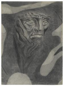 - NOTIZIE STORICO CRITICHE Datata 1905-1906 (Dallaj 1991), l'opera è fisicamente composta da una litografia raffigurante un volto, posta su un supporto cartaceo che ne costituisce lo sfondo, realizzato a matita.\nL'artista effettua tale operazione attraverso una continuità del tratto che stabilisce un rapporto di connessione e reciproca integrazione formale tra i due elementi, mantenendo allo stesso tempo il contrasto, e accentuando l'espressività della massa sferica del volto, che riflette la luce come una superficie scultorea. Anche in questo caso Romani insiste sull'esperienza visionaria della figura, espressione di uno stato d'animo, orientata verso un simbolismo capace di fondersi tra le varietà del mistero.
