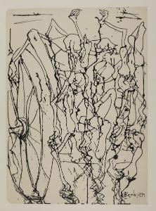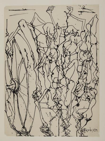 - NOTIZIE STORICO CRITICHE Agostino Barbieri intraprende l’attività artistica sin da giovanissimo. La chiamata alle armi, nel corso della Seconda Guerra Mondiale, lo porta in Jugoslavia come combattente nella campagna di Russia e dal 1943 è impegnato nella guerra di liberazione partigiana. Nel novembre del 1944, viene arrestato e deportato come prigioniero politico in un piccolo paese a pochi chilometri da Linz, nel campo di concentramento di Mauthausen. La tragica realtà a Mauthausen, oltre a lasciare un’impronta indelebile all’interno della sua esistenza, ha portato l’artista a creare alcune tra le più struggenti testimonianze grafiche sui campi di sterminio nazisti. All’interno delle raccolte del Civico Gabinetto di Disegni del Castello Sforzesco di Milano si conservano quindici disegni realizzati da Barbieri nel 1945, probabilmente subito dopo il suo ritorno in Italia (inv-inv. agg. 549-563). \nQueste opere sono caratterizzate da una forte concitazione espressiva mediata da una drastica semplificazione grafica della linea. Corpi nudi e senza vita sono ammassati su comuli di cadaveri, figure larvali dai volti smarriti sono posti all’interno di forni crematoi o in squallide baracche, lavorano nelle cave o all’interno del campo. In queste opere, il vigore della linea riesce a esprime e a comunicare aspetti di una realtà angosciante, un mondo dove ogni speranza è perduta e dove la sola certezza è la morte. Per l’incisività del tratto di china e la prorompente forza espressiva, tali opere possono considerarsi come una delle più toccanti testimonianze dell’agire umano; esse sono il ripensamento intellettuale di un ricordo indelebile, sono la denuncia alla più mostruosa macchina di annientamento verso l’essere umano. Forte è inoltre il legame tra questi disegni e le opere dell’espressionismo tedesco, dove la presenza di figure spettrali diventa l’elemento principale di una pantomima sociale: nei disegni di Barbieri, però, tali elementi diventano fantasmi ridotti al degrado più assoluto, sono corpi che simulano l’esistenza attraverso una terribile danza macabra