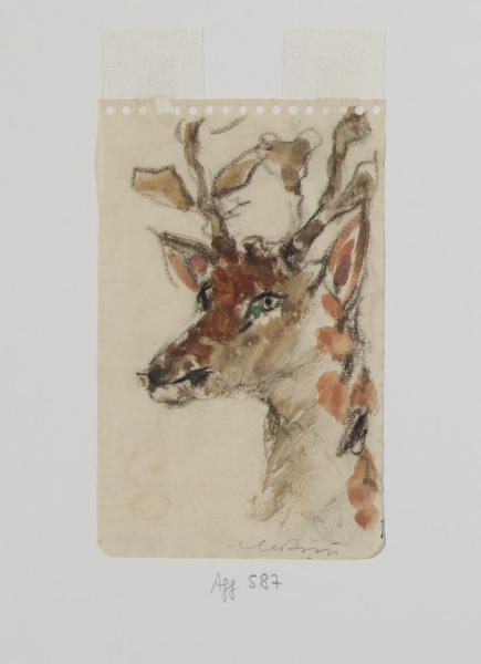 Décor di Teresa nel bosco. n. 15 (Studio per Teresa e il grande cervo). Studio per testa di cervo con gli occhi azzurri