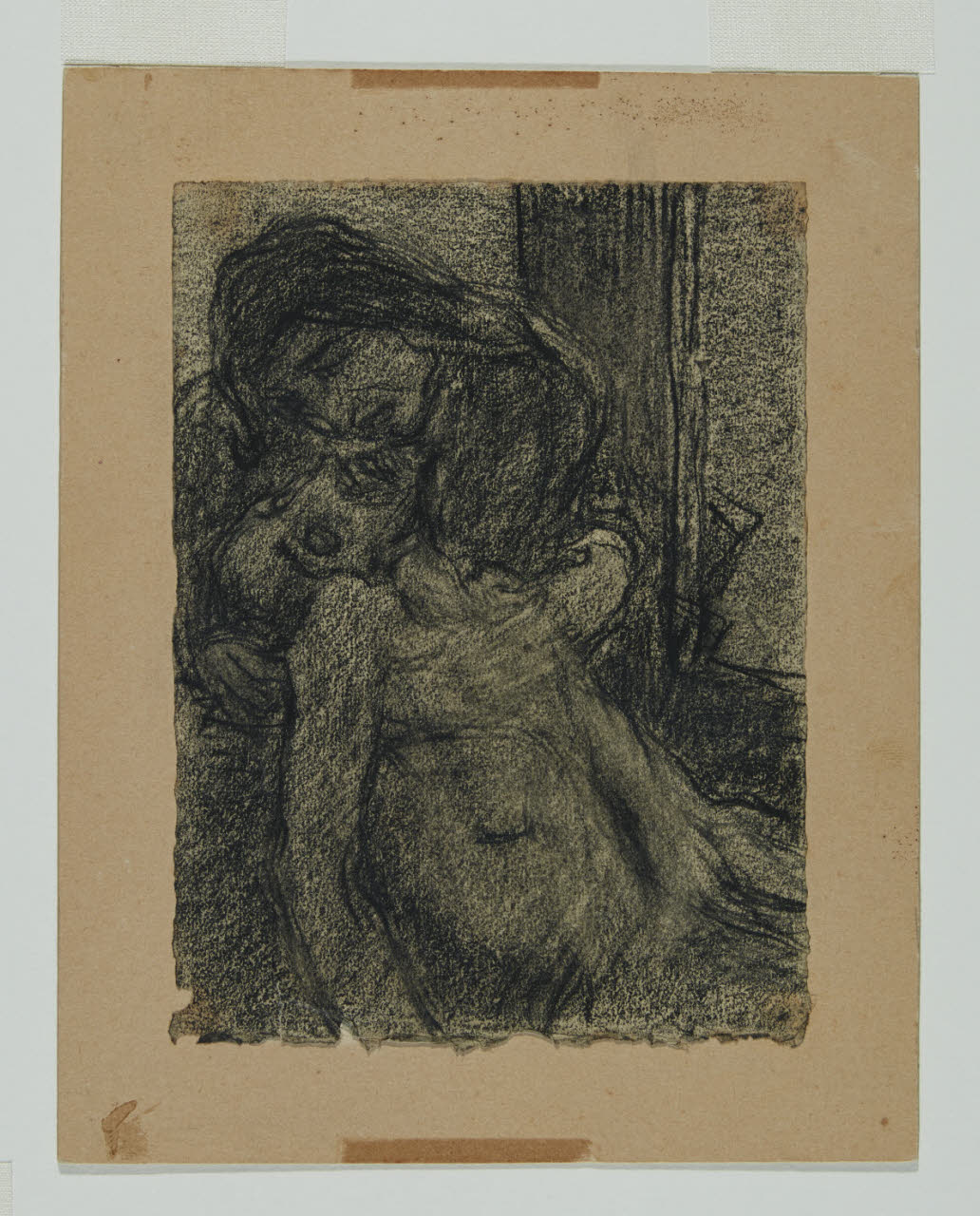 carboncino su carta applicata su controfondo in cartoncino