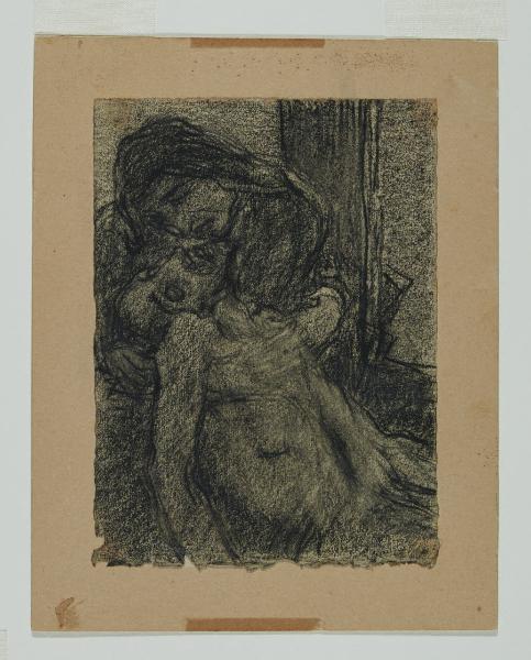 - NOTIZIE STORICO CRITICHE Della vasta produzione grafica di Gaetano Previati, si conservano all’interno del Civico Gabinetto di Disegni del Castello Sforzesco di Milano più di trecento opere su carta. Tra queste, acquistate nel 1983 dalla "Società per l’arte di Gaetano Previati" (società costituita nel 1911 con il fondo delle opere del maestro ferrarese raccolte da Grubicy), si registrano ventiquattro studi a carboncino realizzati tra l’autunno del 1901 e la primavera dell’anno successivo (inv-inv. agg. 632-655). Essi furono eseguiti dall’artista come studi preparatori per la messa in opera delle quattordici tele della "Via Crucis", oggi ai Musei Vaticani.\nSul tema della Passione di Cristo, Previati lavora a una serie di più varianti già dal 1882, quando esegue ad affresco le scene per il cimitero di Castano Primo (oggi staccati ed esposti al Museo Diocesano della città), e continua, negli anni successivi, realizzando ulteriori opere tratte dalle storie evangeliche. \nNino Barbantini, biografo di Previati, sottolinea come già dagli inizi degli anni ottanta dell’Ottocento, "le sue pitture e i suoi disegni che rappresentano i fatti della passione, formano un ciclo numeroso" e anche dopo la realizzazione degli affreschi di Castano, l’artista continua "operosissimamente a dedicare ad ogni singola stazione decine e decine di disegni [...]. Vedeva allora secondo delle composizioni tradizionali, un paese ampio, molta piccola gente, e in mezzo una piccola persona che era Gesù. Successivamente i disegni diventavano sempre più piccoli e le figure di Gesù diventavano sempre più grandi" (N. Barbantini, Gaetano Previati, Roma-Milano 1919, pp. 154-158). \nDa tale testimonianza si desumere che, seppur tra i disegni citati molteplici sono gli elementi comuni, altrettanto numerosi sono i fogli di articolata composizione spesso indipendenti dagli esiti pittorici. In alcuni esempi grafici si osservano composizioni ampie e descrittive, figure dispiegate in spazi ariosi con una sostanziale compattezza stilistica e tagli compositivi arditi. (cfr. Le opere di Gaetano Previati dell’associazione nazionale fra mutilati e invalidi di guerra, Milano 1927, tav. XXI-XXXVII; cfr. F. Bellozzi, T. Fiori, Archivi del Divisionismo, Roma 1968).\nDiverso è, invece, il caso dei ventiquattro piccoli fogli del Castello; in questi ultimi, infatti, si riscontrano chiare analogie iconografiche con le quattordici tele eseguite nei primi anni del Novecento.\nSecondo quanto sostenuto da Gianfranco Bruno, in occasione dalla loro prima esposizione nel 1983, questi fogli sono stati realizzati contemporaneamente alla serie pittorica, se non addirittura subito dopo "come piccolo ciclo destinato alla diffusione da studio". È più probabile però, vista anche la presenza di diverse varianti per alcune delle stazioni rappresentate, che i piccoli disegni abbiano accompagnato tutta la fatica di Previati per l’esecuzione delle opere, e che sia stato lo stesso Grubicy a decidere di raccogliere il meglio degli studi da taccuino, appositamente selezionati per la circolazione (Bruno 1983). \nNei ventiquattro fogli del Castello, l’artista è riuscito a comunicare un’intensità espressiva raramente raggiunta nelle sue opere pittoriche di soggetto religioso. Egli, infatti, in queste immagini raggiunge livelli di struggente e inusuale sensualità mistica. Le figure sono descritte attraverso una naturalezza degli atteggiamenti, entro i confini di uno spazio minimo e con una riduzione prospetticamente della scena che fa posto al Cristo o ai dolenti in primo piano. Inoltre, attraverso mutamenti di segno e chiaroscuro: "da un tratto violento, nervosamente sovrapposto a uno morbido e quasi dissolto in uno sfumato pulviscolare" (Fergonzi 1999), Previati riesce magistralmente a eludere i contorni e a immergere le figure in un chiaroscuro quasi trascendentale.