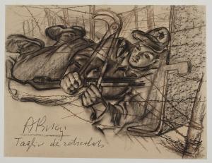 - NOTIZIE STORICO CRITICHE Allo scoppiò della Prima Guerra Mondiale, molti artisti si arruolarono come volontari. Anselmo Bucci, insieme a Boccioni, Erba, Funi, Marinetti, Piazzi, Sant’Elia e Sironi entra a far parte del "Battaglione Lombardo di Volontari Ciclisti"(III compagnia, VIII plotone) e combatte a Dosso Casina contro gli austriaci, sconfiggendo il nemico il 24 ottobre del 1915. L’euforia durò poco, il primo dicembre del 1915, il glorioso corpo volontari fu sciolto e Bucci passo al 68°Regimento di Fanteria per poi pellegrinare per vari fronti (L. Sansone, Patriottismo futurista. Il Battaglione Lombardo. Volontari Ciclisti Automobilisti, Milano 2007). Nel fango putrido delle trincee, tra le macerie dei villaggi distrutti, gli artisti partiti per la guerra registravano la realtà che osservavano con splendidi disegni, molti dei quali eseguiti frettolosamente all’interno delle trincea, nei campi di battaglia o nei momenti di pausa. Anche Anselmo Bucci ci ha lasciato una grande quantità di testimonianze grafiche raffiguranti gli ambienti e le abitudini dei soldati, i movimenti delle truppe e i paesaggi sconvolti dalla guerra, ma anche vere e proprie scene di battaglia tratte dall’esperienza al fronte. All’interno del Civico Gabinetto di Disegni del Castello Sforzesco di Milano si conservano due fogli appartenenti a questo periodo e raffiguranti rispettivamente due soldati alpini stesi a terra, uno in atto di tagliare dei reticolati (inv. 1313 E 16) e l’altro che avanza strisciando (inv. 1314 E 17). Per quest’ultimo disegno si conosce una variante in punta secca e maniera nera riprodotta da Giorgio Nicodemi su "Anselmo Bucci : 79 illustrazioni". In queste due opere, realizzate con un contorno deciso e abbreviato di carboncino "la vivacità dell’impressione in movimento si fonde con la plasticità dei volumi, creati dal denso chiaroscuro della sua matita di colorista. Ogni disegno coglie una situazione e la rende con plastica evidenza"(M. De Stasio, La guerra del 1915-18 nei disegni degli artisti al fronte, in Da Modigliani a Fontana. Disegno italiano del XX secolo nelle Civiche Raccolte d'Arte di Milano, a cura di M. Garberi, Milano 1991, p. 41).