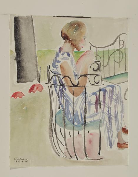 - NOTIZIE STORICO CRITICHE Promotore dell'arte futurista in Sicilia, Vittorio Colonna dagli inizi degli anni Trenta comincia a sperimentare un altro genere di pittura. Questa, più vicina alla ricerche condotte dal gruppo dei Sei di Torino, è caratterizzata da un allegro gusto di rapporti tonali con approssimate acquerellature di grande freschezza compositiva. Dopo una mostra dedicata ad alcuni pittori siciliani, inaugurata nel maggio del 1932 alla Galleria del Milione, nel giugno dello stesso anno le raccolte pubbliche milanesi acquistano due disegni dell'artista palermitano, intitolati rispettivamente "Figura femminile con ombrellino" e "Donna seduta che ricama". Richiamando in modo diverso la pittura francese, attraverso effetti luministici di grande intensità espressiva, nei due acquerelli Colonna dispone le due figure in ambienti sospesi en plein air. Se però nella "Donna seduta che ricama" l'effetto decorativo dei riccioli della sedia e della testata del letto, o dei particolari del vestito, risulta più vicino alle figure femminili presenti nelle stanze immerse dalla luce, delle opere di Matisse, nella "Figura femminile con ombrellino" il gioco di riflessi luministici è molto più complesso, per quelle velate pennellate acquose che ricoprono tutto il foglio (Vilardi 2001-2002).