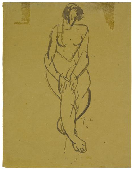 - NOTIZIE STORICO CRITICHE Nel dicembre del 1932 Fernand Léger espone, per la prima volta a Milano, un gruppo di quindici disegni all'interno di una mostra collettiva, con Jules Pascin e Luigi Bartolini presso la Galleria del Milione, centro espositivo di grande importanza per la conoscenza in Italia degli sviluppi sull'arte straniera degli anni Trenta. L'evento, pubblicizzato all'interno del Bollettino della galleria, fu accolto dalla stampa e da una critica entusiasta, la quale parlando del pittore fa emergere le sue origini cubiste, dando comunque spazio alla sua evoluzione poetica (Vilardi 2001-2002). Tra i fogli di Léger esposti in quell'occasione, nell'aprile del 1934, furono acquistati, per le raccolte di grafica del Castello Sforzesco, "L'Arbre" (inv. C 408) e "Personnage". Quest'ultimo fu utilizzato per illustrare l'articolo di Carrà dedicato all'esposizione, apparso sull'"Ambrosiano" del 14 dicembre del 1932. L'opera, siglata e datata "FL/ II", descrive attraverso un tratto diluito di inchiostro bruno e un segno veloce del pennello un nudo femminile. Come osservato da Elena Vilardi, l'opera vicina al modo di intendere il disegno come sperimentazione, mostra una forte tensione nella ricerca del giusto rapporto fra le linee che costruiscono la figura e l'effetto d'insieme, estremamente elegante nella scelta dell'inchiostro di seppia sulla carta giallognola (Ivi).