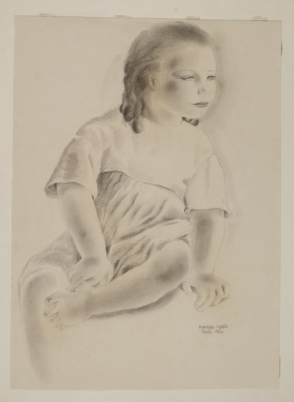 - NOTIZIE STORICO CRITICHE L'artista austriaca Lydis Mariette, particolarmente nota per le sue illustrazioni editoriali, sin dalla metà degli anni Venti espone le proprie opere all'interno delle principali gallerie milanesi, come la Bottega di Poesia o la Galleria del Milione. Proprio da quest'ultima, nel 1932, le Raccolte Civiche del capoluogo lombardo acquistano un disegno a matita intitolato "Bambina seduta". Attraverso delicate sfumature, l'artista descrive qui la figura di una piccola bambina che volge la testa leggermente di lato. Una forte intensità chiaroscurale, creata grazie a masse sintetiche di luce e d'ombra, regala all'immagine un senso tridimensionale e scultorio, visibile in particolare nei boccoli dei capelli, nelle gote in ombra e nelle pieghe della candida veste. Sul verso è abbozzato un volto femminile leggermente definito da un tenue tratto di matita e da un delicato chiaroscuro.