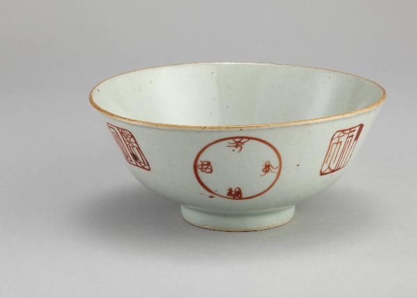 Ciotola a smalto bianco con decorazione a smalti rossi a imitazione di sigilli in scrittura arcaica, con marchio Daoguang.