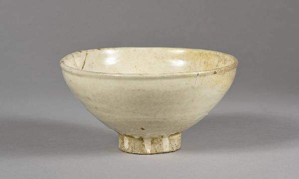 Ciotola con breve piede circolare. Invetriatura bianco latte craquelé.