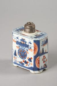 - NOTIZIE STORICO CRITICHE La produzione a Jingdezhen del tipo imari, creato per il gusto occidentale, è solitamente di qualità inferiore a quella giapponese, che si proponeva di rimpiazzare. Tuttavia, questo oggetto si rivela interessante per il decoro ottenuto semplicemente con il blu cobalto sottocoperta e il solo rosso corallo di ferro sopracoperta, senza la presenza dell'oro. Come talvolta avviene per i pezzi d'esportazione, anche in questo caso il motivo decorativo, che si rifà a una mescolanza di motivi comuni a questa tipologia, non sembra possedere un significato particolare.