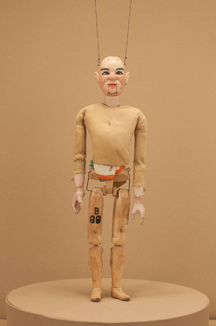 - NOTIZIE STORICO CRITICHE Tassello dietro alla testa per coprire l'alloggiamento creato per realizzare il meccanismo della bocca mobile. Lo spettacolo "La Tempesta" fu commissionato dalla Biennale di Venezia nella persona di Franco Quadri, direttore del Settore Teatro, nel 1985. Eduardo De Filippo volle che ad interpretarlo fossero le marionette. Lo spettacolo, andato in scena un anno dopo la sua morte al Teatro Goldoni di Venezia, fu curato per la parte registrata, con la voce del celebre attore, dal figlio Luca De Filippo; per i costumi furono creati bozzetti da Maurizio Dotti, modificati in corso di allestimento da Eugenio Monti Colla; le scenografie furono affidate a Pierluigi Bottazzi, Maurizio Dotti e Riccardo Di Lauro. La musica fu composta e diretta dal maestro Antonio Sinagra, compositore di fiducia dalla famiglia De Filippo. Nella ripresa del 2013 furono realizzate nuove scenografie da Franco Citterio.