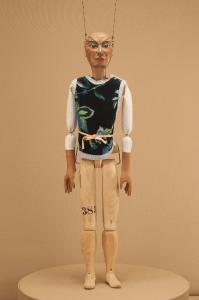 Testa in legno di tiglio fissata al corpo tramite ferro, occhi di vetro. Corpo normale in abete. Gambe unite al bacino tramite bordione in ferro, ginocchia ad incastro mobile. Mani in tiglio con dita scolpite e separate. Bilancino a croce metodo Holden.