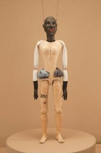 Testa di legno di tiglio fissata al corpo tramite ferro, occhi di vetro. Bocca mobile. Corpo normale in abete. Gambe unite al bacino tramite bordione in ferro, ginocchia ad incastro mobile. Mani in tiglio mobili con dita scolpite e separate. Bilancino a croce metodo Holden.