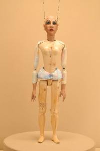 Testa di legno di tiglio fissata al corpo tramite ferro, occhi di vetro. Corpo normale in abete. Gambe unite al bacino tramite bordione in ferro, ginocchia ad incastro mobile. Mani in tiglio con dita scolpite e separate. Bilancino tradizionale per coppie.