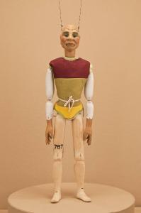 Testa di legno di tiglio fissata al corpo tramite ferro, occhi di vetro. Corpo normale in abete. Gambe unite al bacino tramite bordione in ferro, ginocchia ad incastro mobile. Mani in tiglio con dita scolpite e separate. Bilancino a croce metodo Holden.