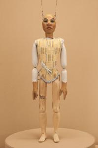 Testa di legno di tiglio fissata al corpo tramite ferro, occhi di vetro. Corpo normale in abete. Gambe unite al bacino tramite bordione in ferro, ginocchia ad incastro mobile. Mani in tiglio con dita scolpite e separate. Bilancino a croce per coppie.