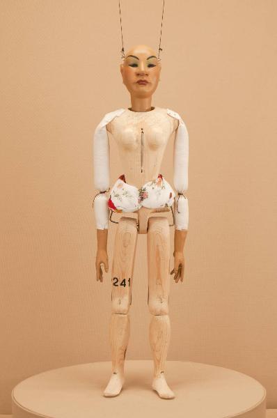 Testa di legno di tiglio fissata al corpo tramite ferro, occhi di vetro. Corpo normale in abete. Gambe unite al bacino tramite bordione in ferro, ginocchia ad incastro mobile. Mani in tiglio con dita scolpite e separate. Bilancino a croce per coppie.