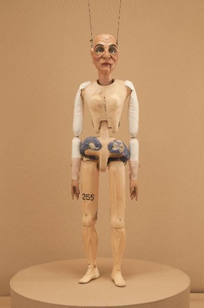 Testa di legno di tiglio fissata al corpo tramite ferro, occhi di vetro. Corpo normale in abete. Gambe unite al bacino tramite bordione in ferro, ginocchia ad incastro mobile. Mani in tiglio con dita scolpite e separate. Bilancino a croce per coppie.