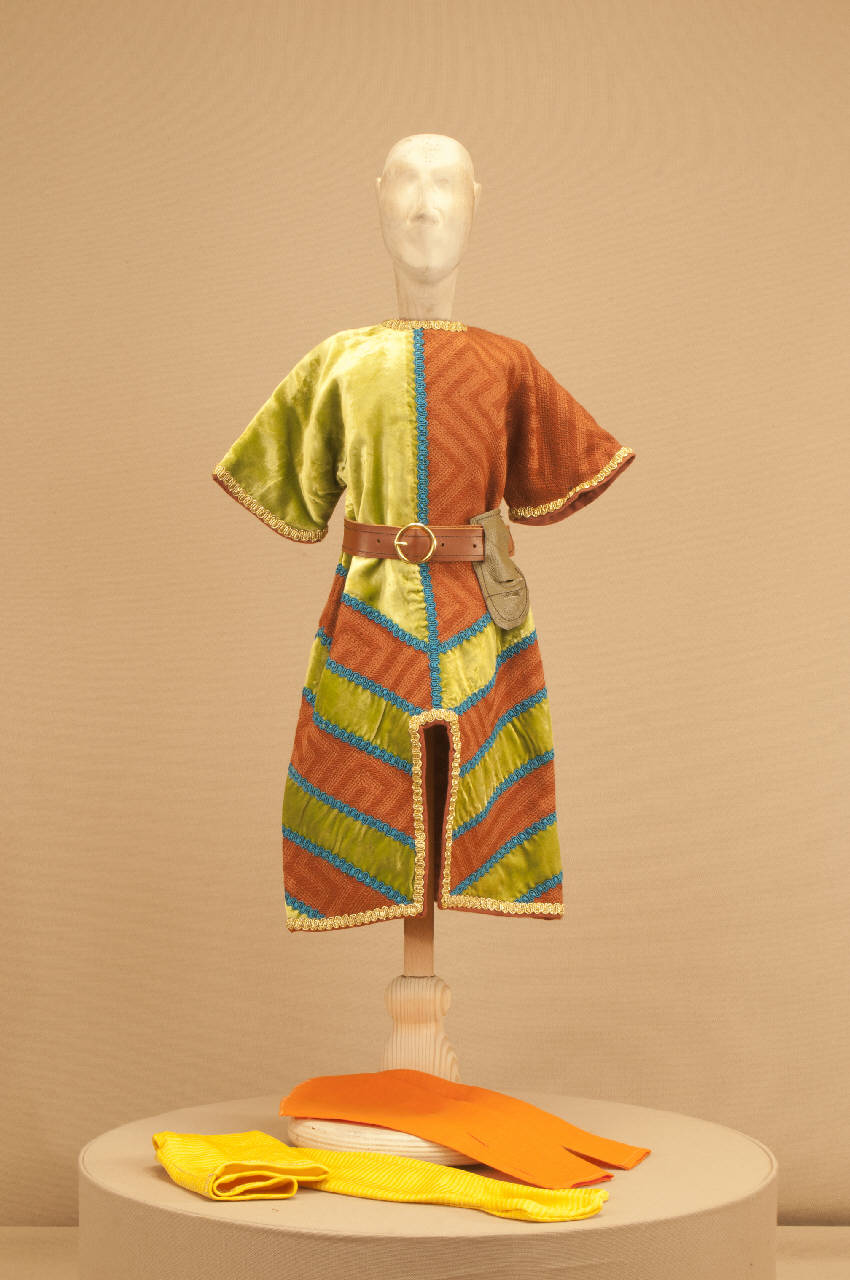 Costume per militare di foggia medievale composto da veste, sottomaniche, cintura e calzamaglia.