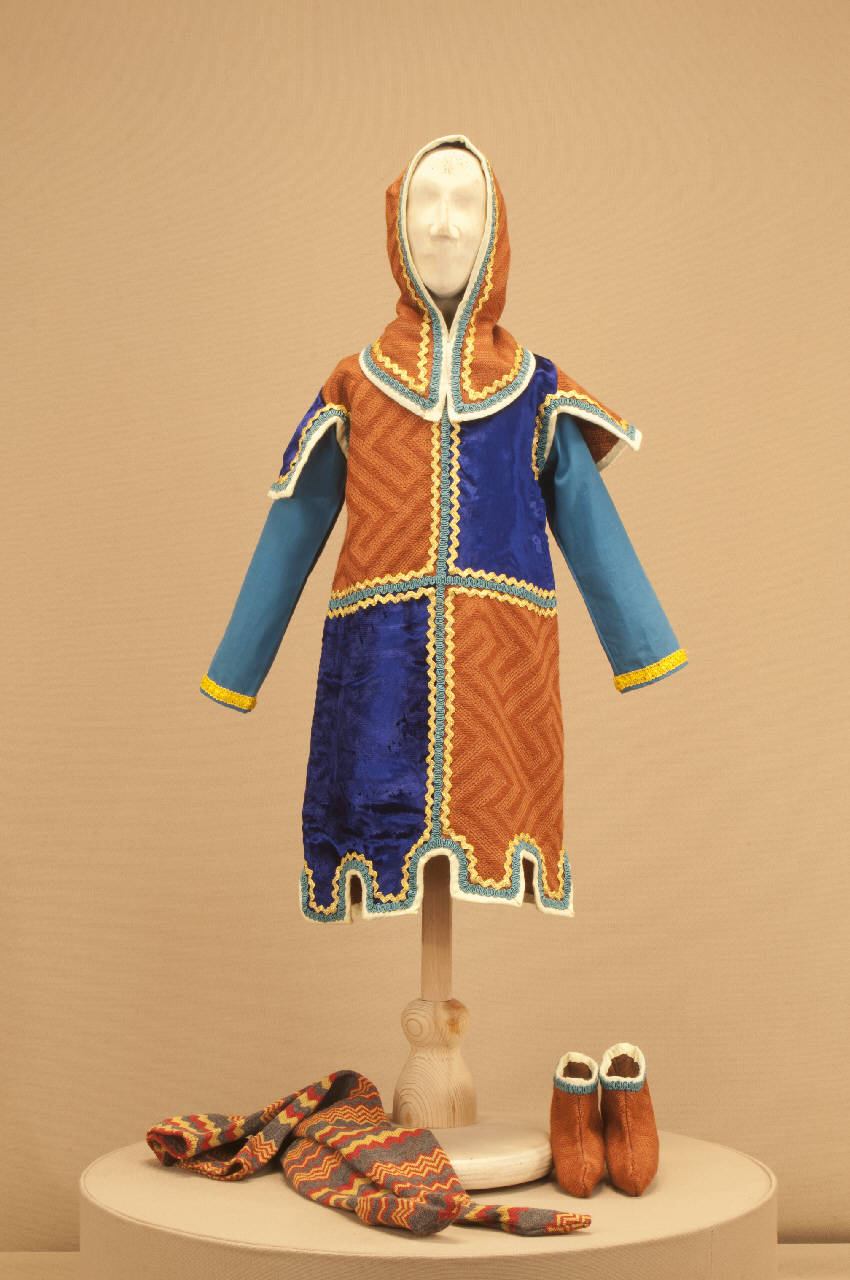 Livrea di foggia medievale composta da veste, corpino, scarpe, cappuccio e calzamaglia.