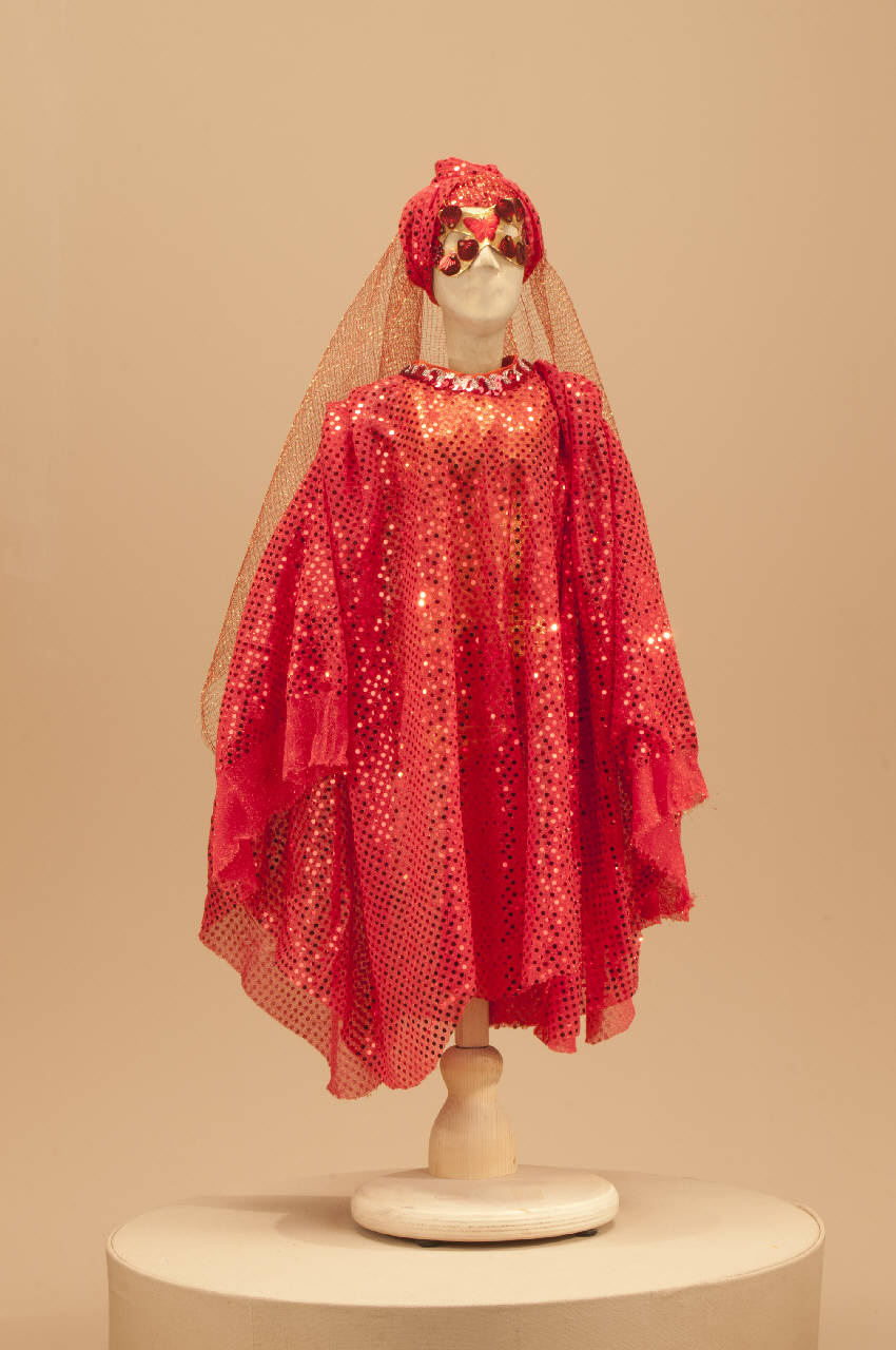 Costume fantastico composto da veste, 2 fascie per perizoma e corpino, 2 fascie per acconciatura, maschera e scarpe .