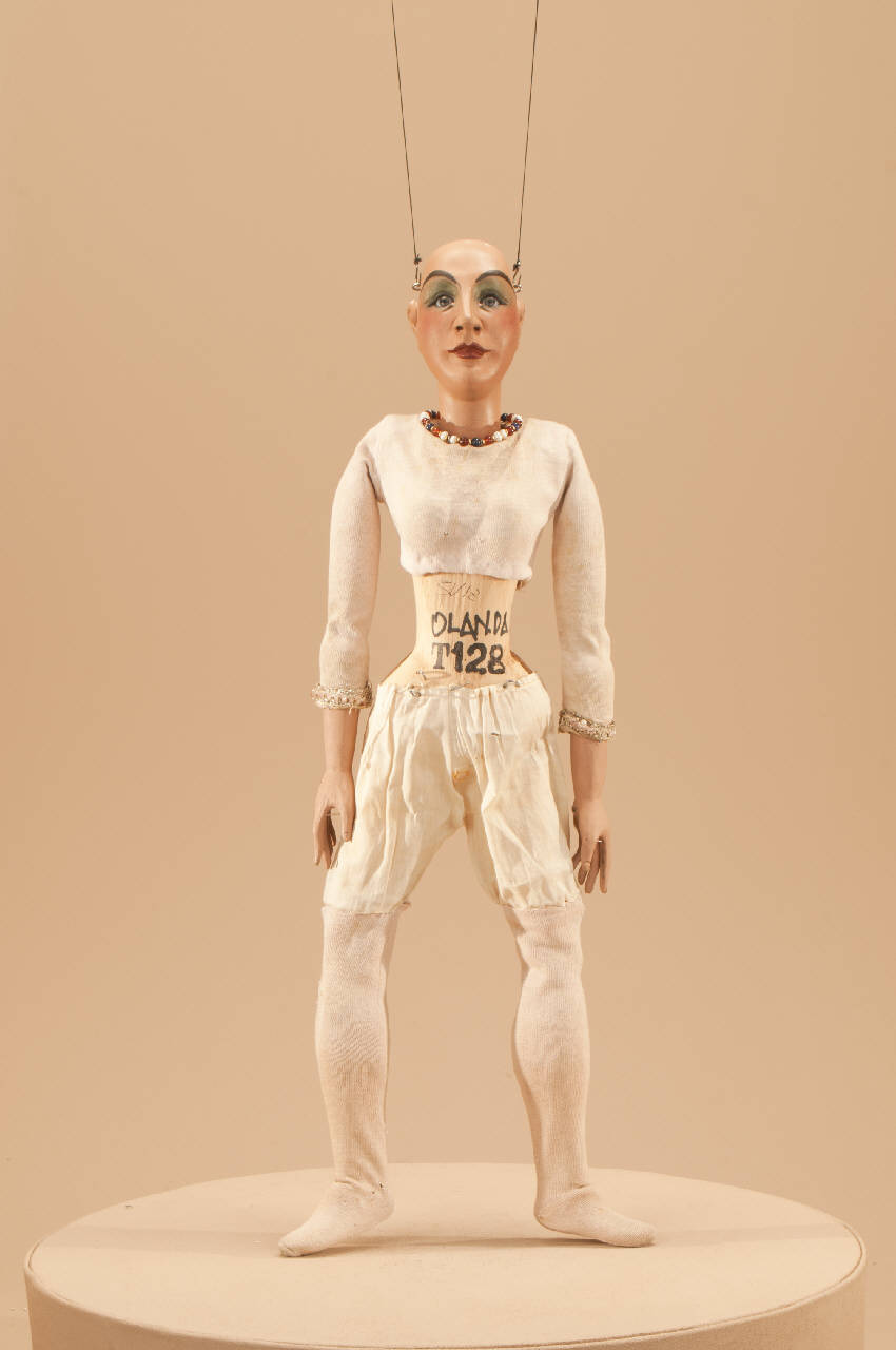 - NOTIZIE STORICO CRITICHE Marionetta danzante montata su un bilancino che permette il movimento di un totale di quattro marionette di struttura uguale che, fra altre, nello spettacolo Excelsior animano la scena allegorica finale. Il ballo "Excelsior" fu rappresentato la prima volta a Milano, al Teatro alla Scala, la sera dell'11 gennaio 1881. Autore del libretto e della coreografia era Luigi Manzotti, mentre Romualdo Marengo lo era della musica e Alfredo Edel delle scene e dei costumi. Il successo del ballo fu travolgente. Le repliche furono 103 nella stagione.\nLa versione marionettistica per la Compagnia Carlo Colla e Figli in due tempi e undici quadri fu allestita da Carlo II Colla col consenso dell¿autore e presentata col titolo di "Civiltà e Progresso" nel 1895. Il titolo mutò poi nel tempo. Il primo allestimento del ballo ricordava ancora troppo l'originale scaligero. Ma fu sufficiente che lo spettacolo entrasse nella routine degli spostamenti della Compagnia perché le peculiarità del teatro marionettistico diventassero preponderanti.\nCosì l'"Excelsior" approdò al Teatro Gerolamo di Milano, quando la Compagnia ci entrò stabilmente nel 1906, proprio negli anni in cui, dopo qualche ultima apparizione, il "ballo grande" italiano, simbolico-narrativo sta tramontando sulle scene europee, divenendo unico retaggio del teatro delle marionette e, più particolarmente, della Compagnia Carlo Colla e Figli che ha continuato a riproporlo sino ad oggi, offrendo al pubblico di un secolo dopo la più vivida testimonianza del kolossal scaligero.